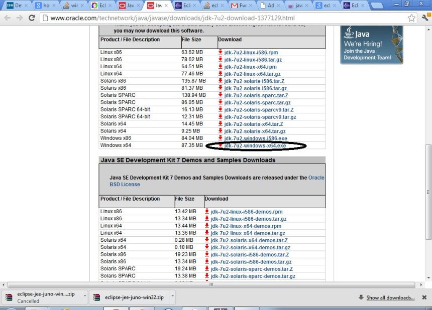 Download the eclipse and java from the official below sites with same bit(32 bit) or (64bit)